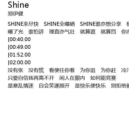| [02:53.00][01:52.00][00:57.00] | SHINE来尽快 SHINE全曝晒 SHINE甜蜜的风采 就亮亮相亦无坏 |