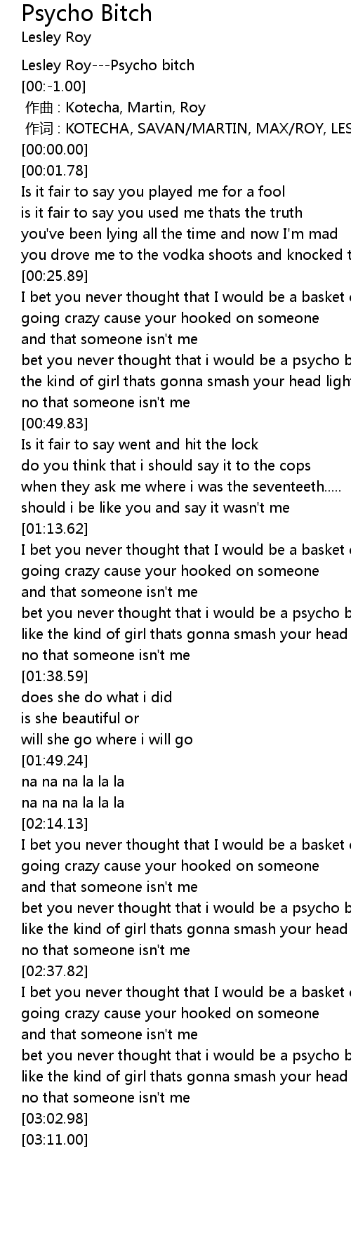 | [00:38.75] | bet you never thought that i would be a psycho bitch |