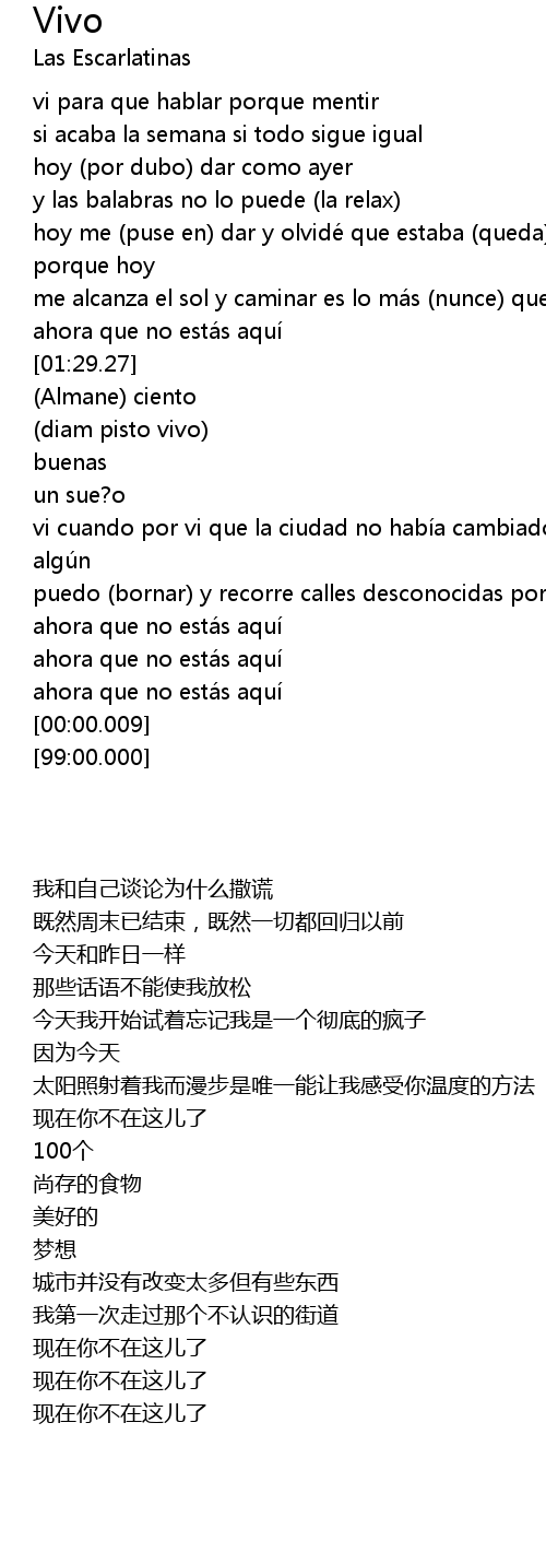 | [01:06.40] | me alcanza el sol y caminar es lo ma s nunce que me puede su fever |