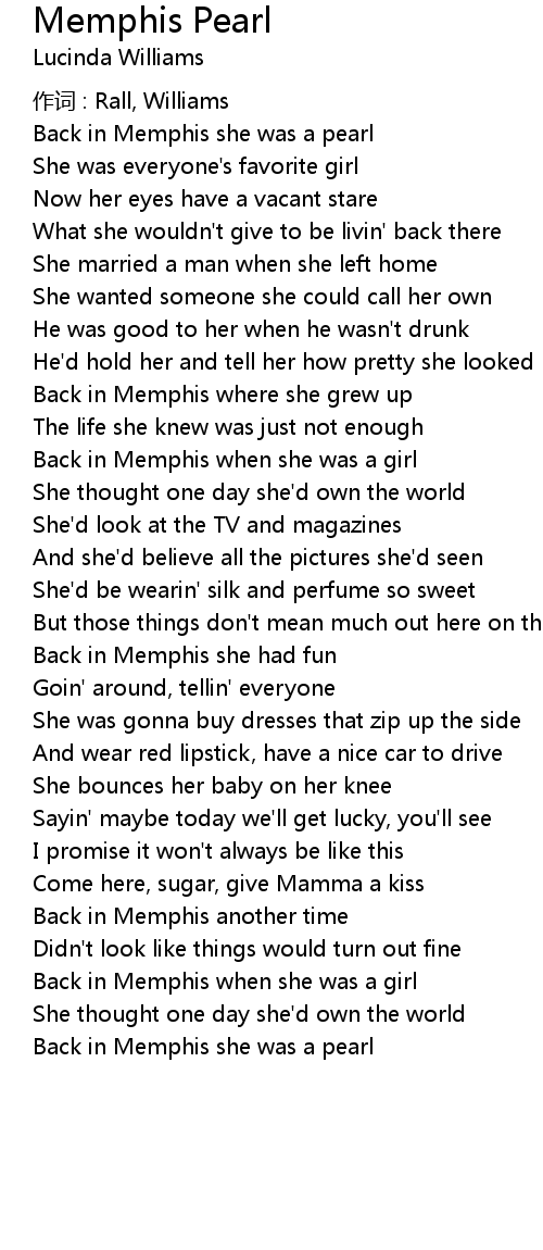 | Back in Memphis she was a pearl |