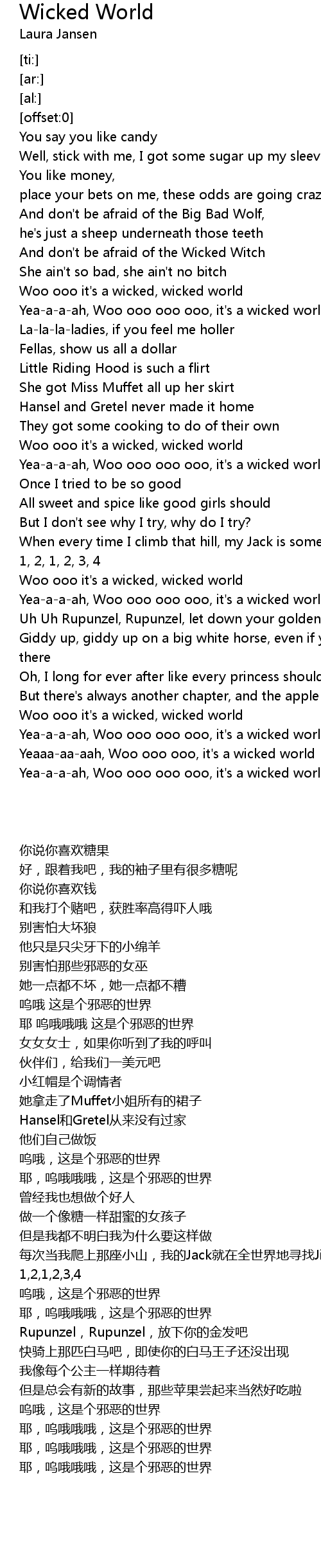 Yeaaa-aa-aah, Woo ooo ooo, it's a wicked world |