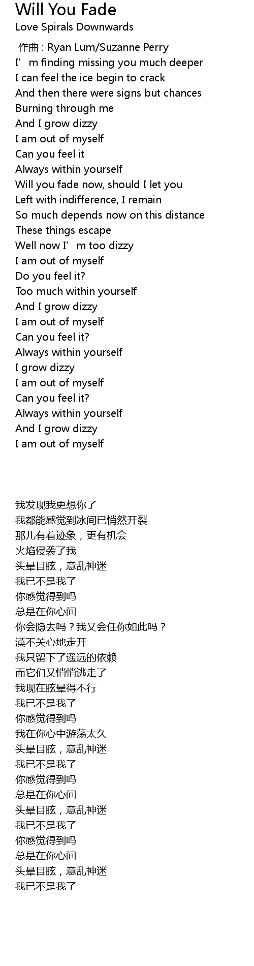 | 歌曲 | Will You Fade |