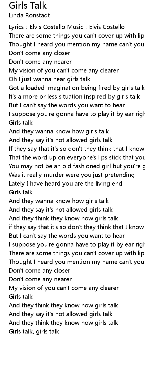 | And they wanna know how girls talk | |