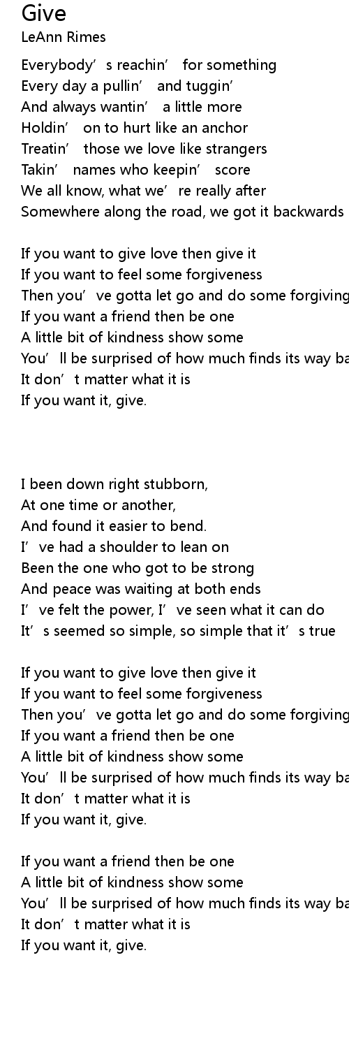 | Then you’ve gotta let go and do some forgiving of your own | |