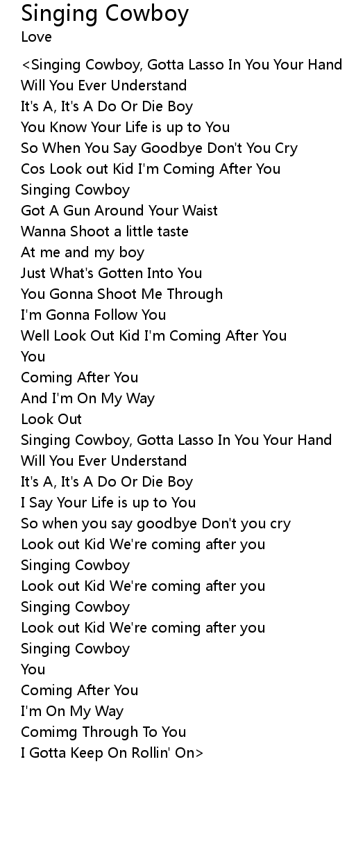 Singing Cowboy, Gotta Lasso In You Your Hand