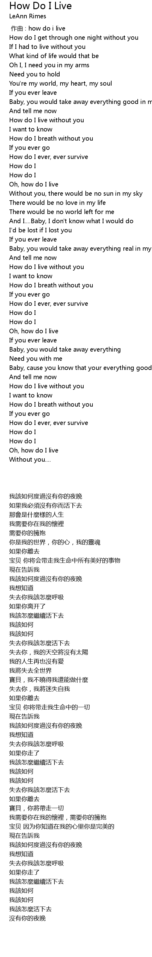 | 歌曲 | How Do I Live |