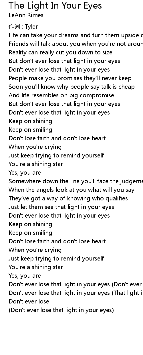 | Don' t ever lose that light in your eyes |