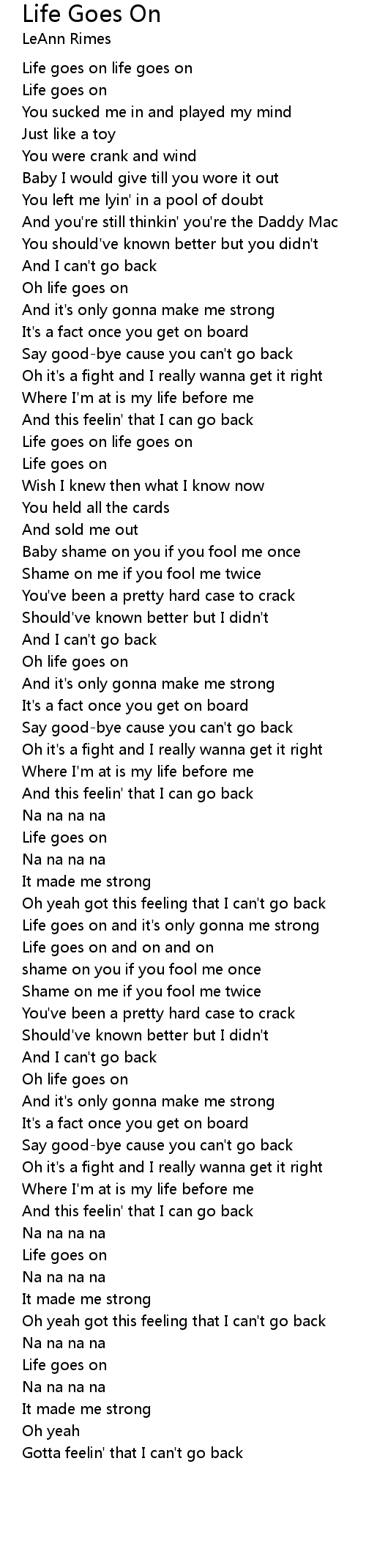 | [02:02.849] | Life goes on and it's only gonna me strong |