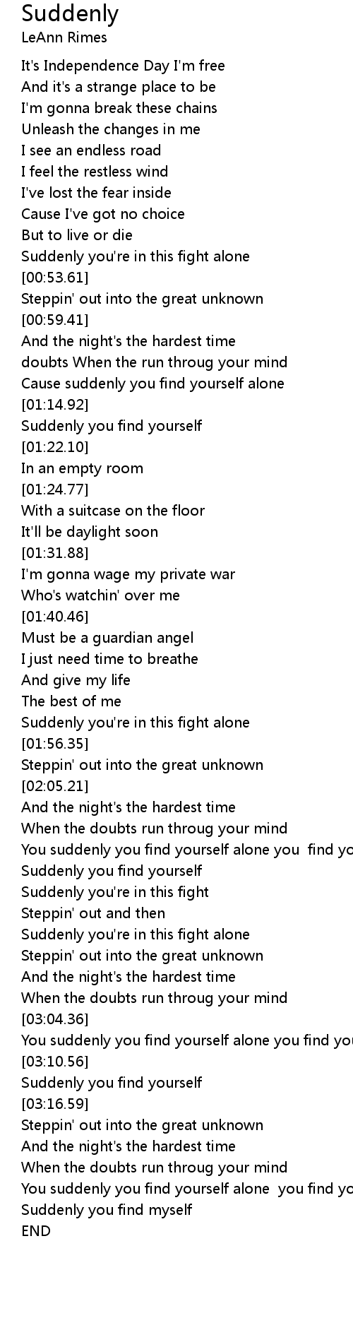 You suddenly you find yourself alone you find yourself alone |