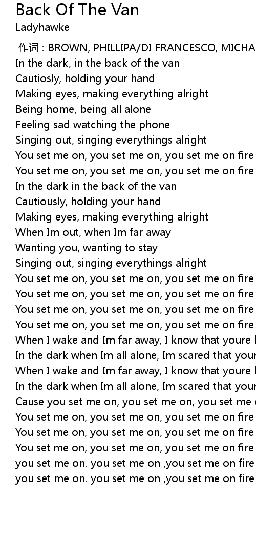 | [00:23.63] | In the dark, in the back of the van |