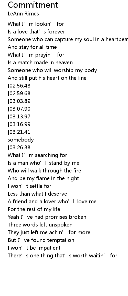 | [03:44.77][02:56.48][02:03.82][00:53.31] | Commitment |