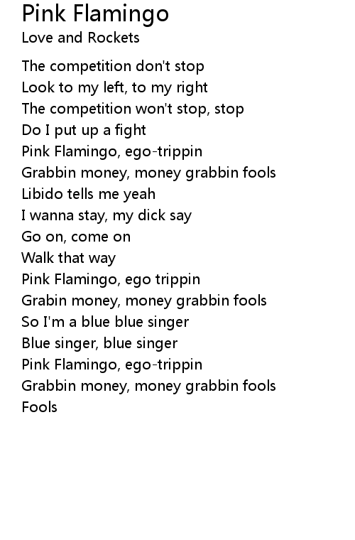 | Pink Flamingo, ego-trippin | |
