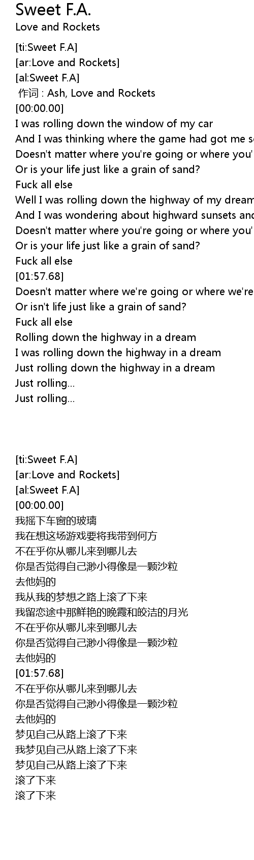 | [00:00.00] | 作词 : Ash, Love and Rockets |
