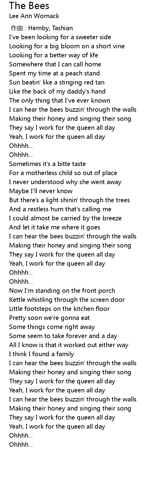 | [00:45.50] | I can hear the bees buzzin' through the walls |