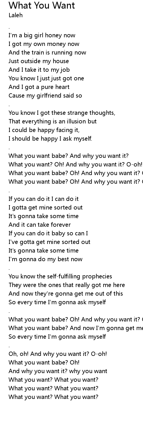 | [00:51.80] | What you want babe? And why you want it? |