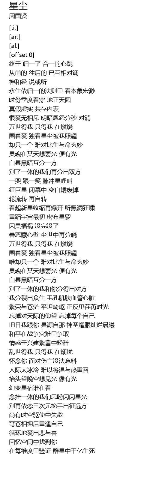 | [02:43.51] | 围着爱 独看星尘被我照耀 |