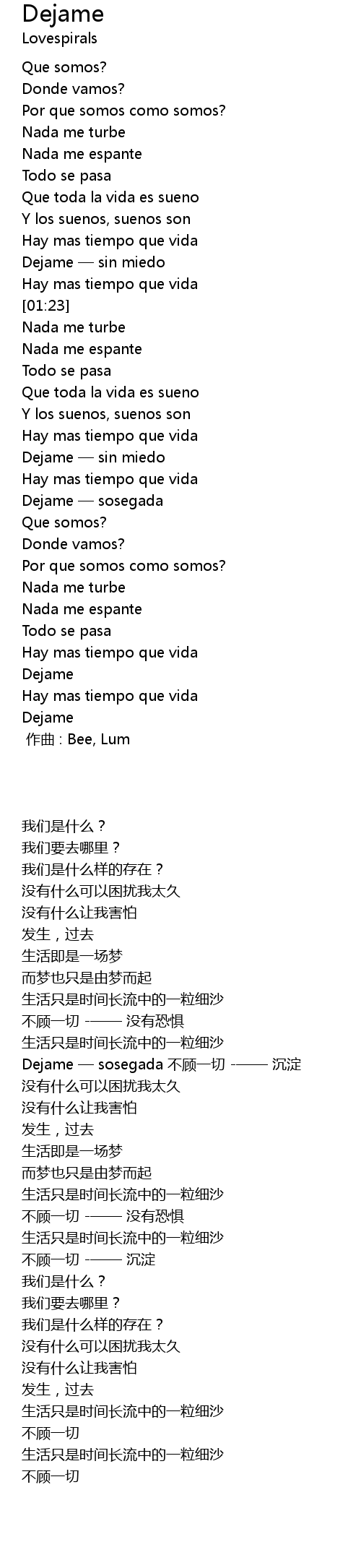 | [01:23] | Dejame — sosegada 不顾一切 -—— 沉淀 |