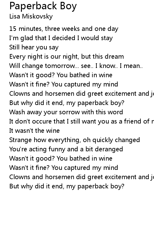 But why did it end, my paperback boy? |