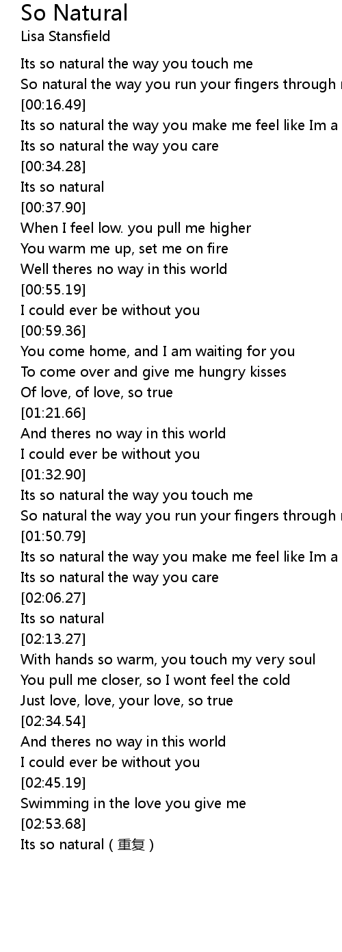| [00:18.43] | Its so natural the way you make me feel like Im a lady |