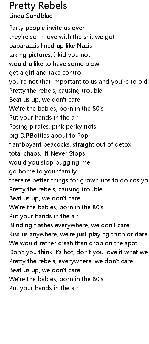 | Pretty the rebels, everywhere, we don't care | |