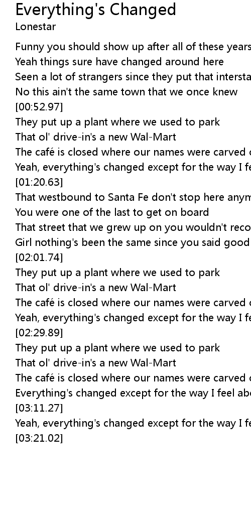 | [03:13.23] | Yeah, everything' s changed except for the way I feel about you |