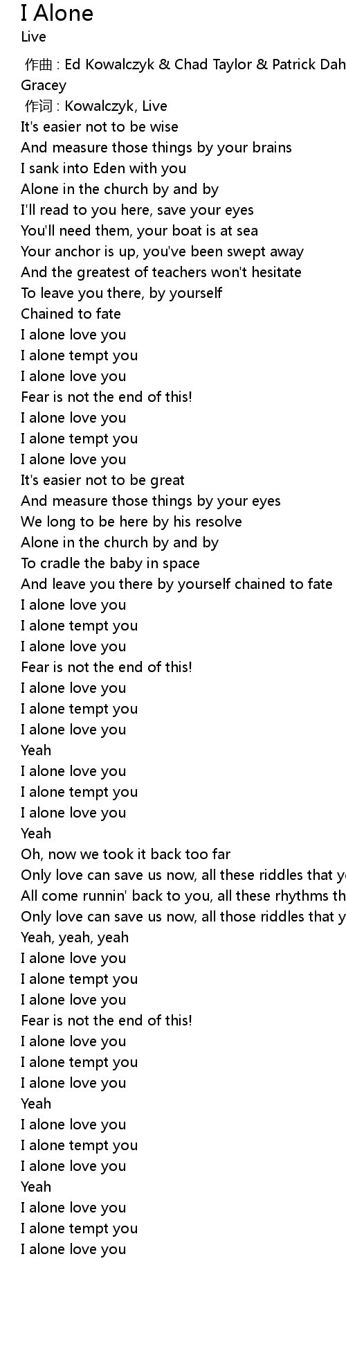 | [00:00.00] | zuo qu : Ed Kowalczyk Chad Taylor Patrick Dahlheimer Chad Gracey |