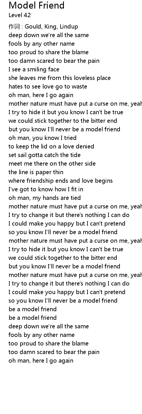 | but you know I'll never be a model friend | |