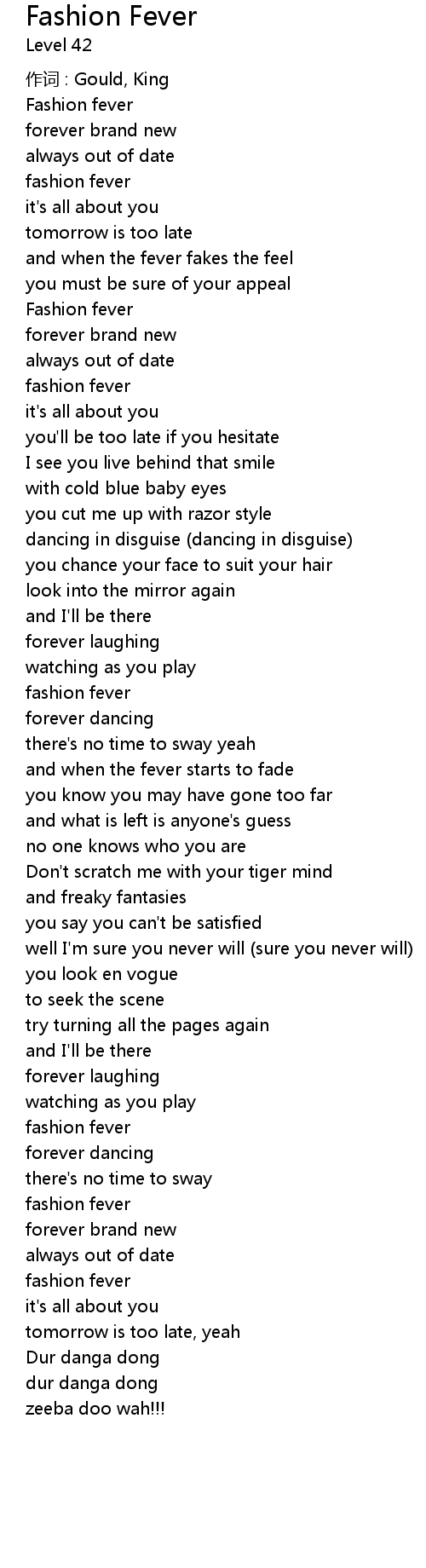 | 歌曲 | Fashion Fever |