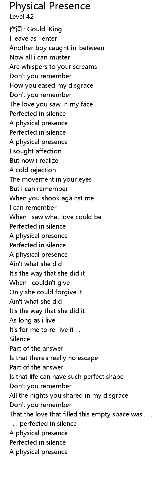| 歌曲 | Physical Presence |