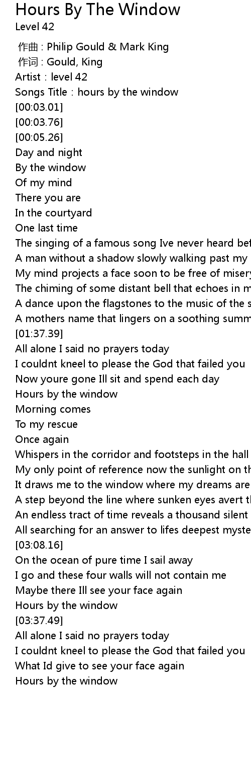 | [00:01.70] | Songs Title:hours by the window |