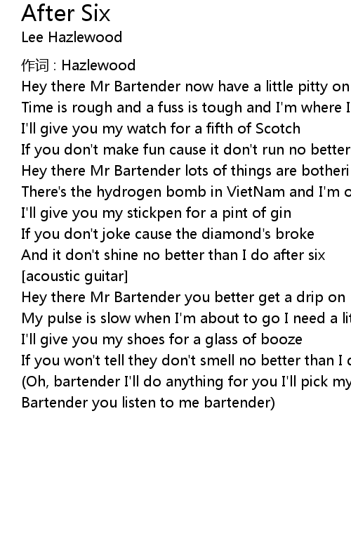 | And it don' t shine no better than I do after six | |