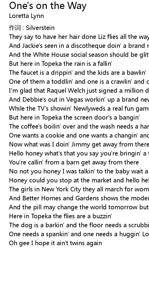 | One of them a toddlin' and one is a crawlin' and one's on the way | |