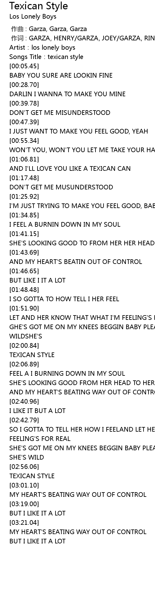 | [02:05.06] | TEXICAN STYLE |