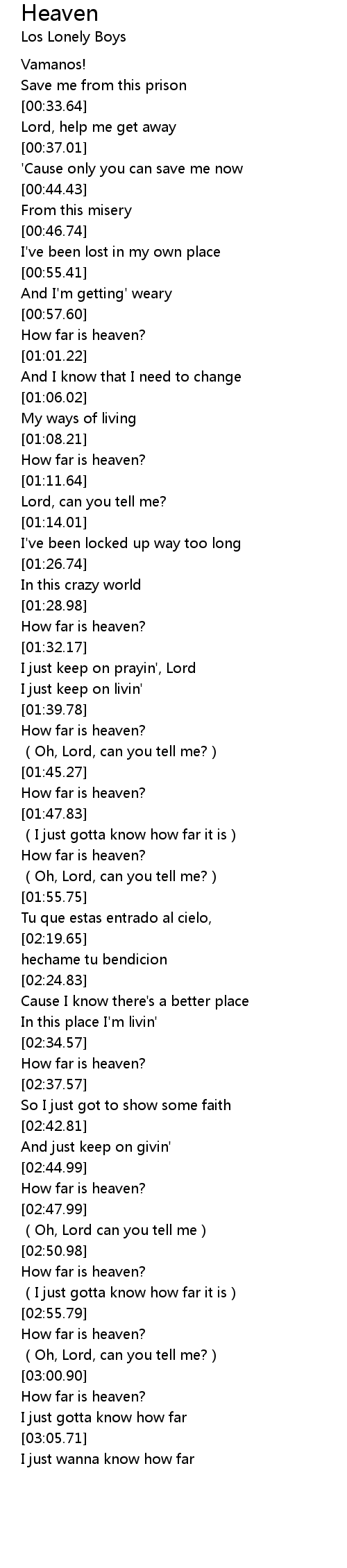 | [03:01.90] | How far is heaven? |