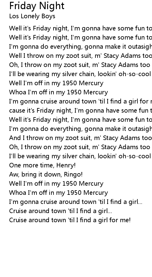 Well it's Friday night, I'm gonna have some fun tonight (ha ha ha) |
