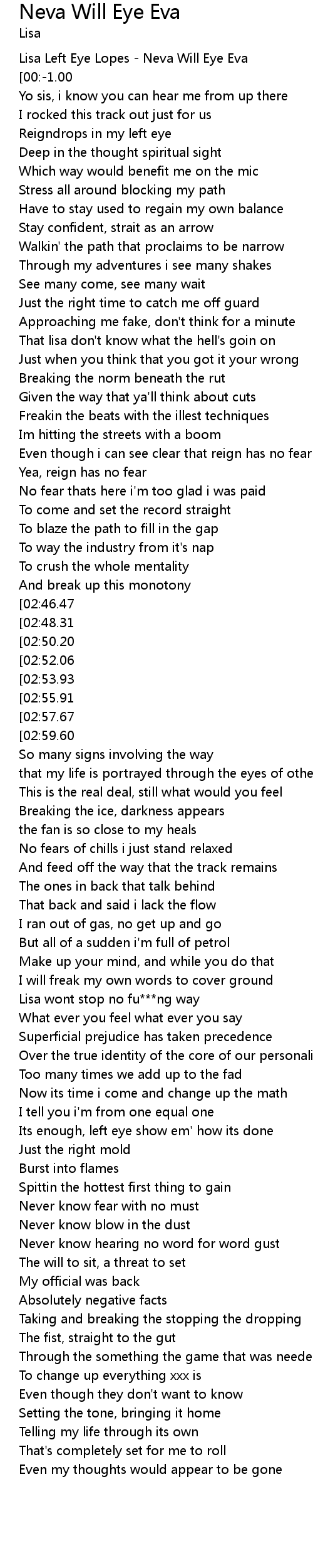 Lisa Left Eye Lopes - Neva Will Eye Eva |