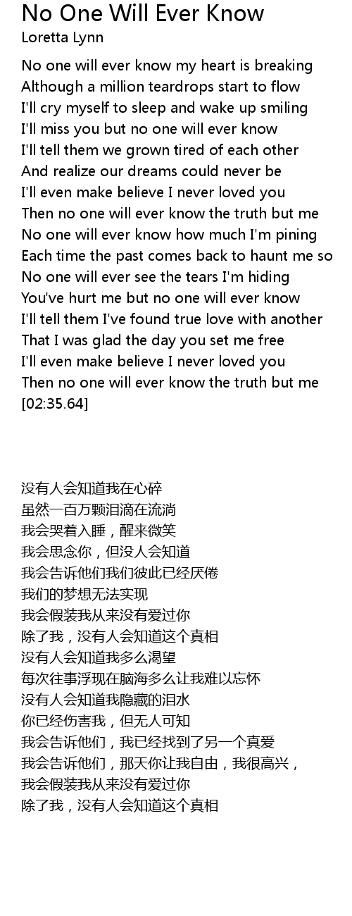 No one will ever know my heart is breaking |