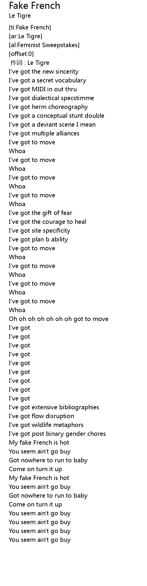 | [00:00.00] | 作词 : Le Tigre |