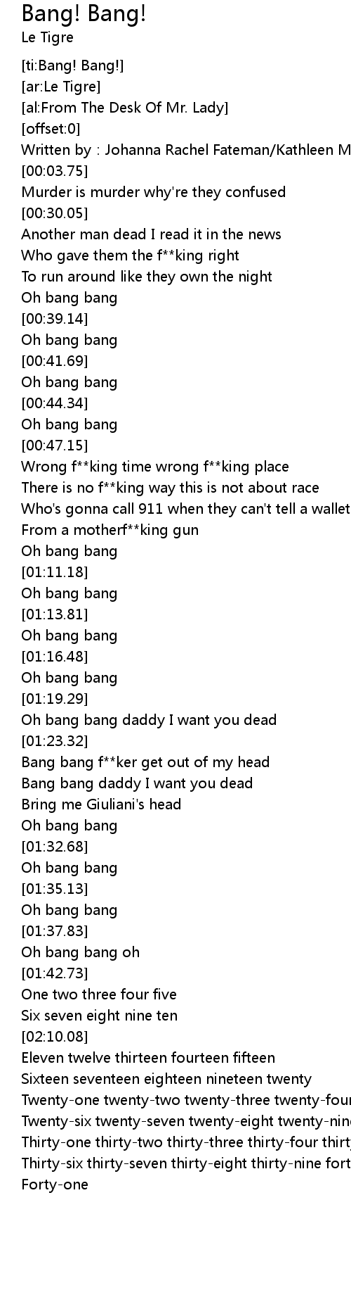 | [00:43.30] | Oh bang bang |