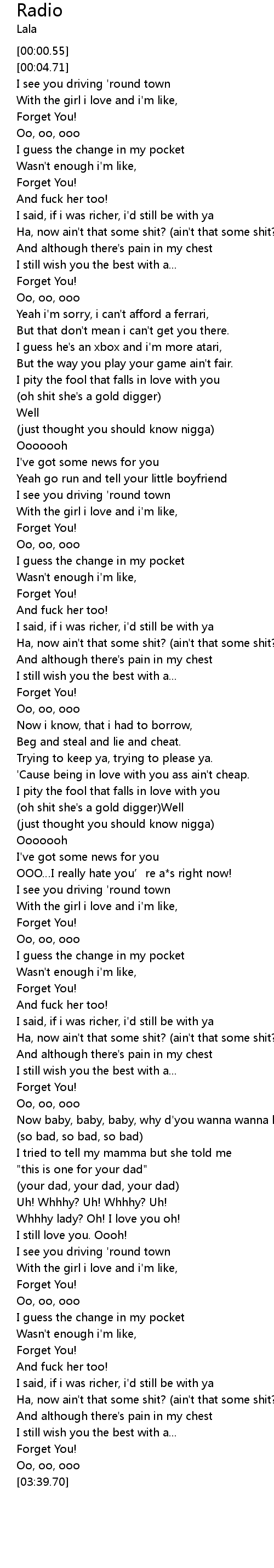 | [02:20.51] | Forget You! |