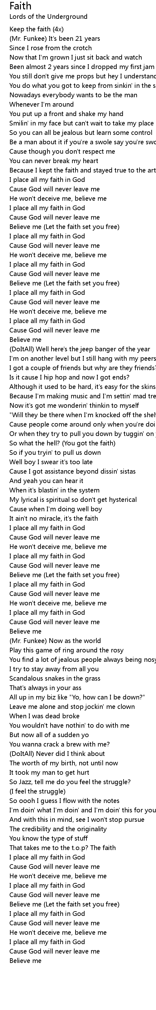 Keep the faith (4x) |