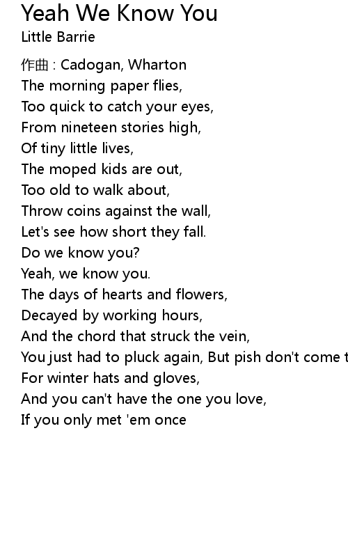 | 歌曲 | Yeah We Know You |