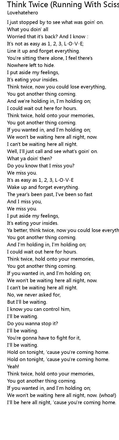 | 歌曲 | Think Twice (Running With Scissors Pt. II) |