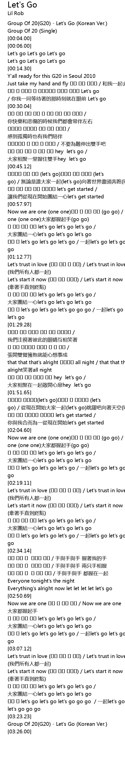 | [03:24.00] | Group Of 20 G20 Let' s Go Korean Ver. |