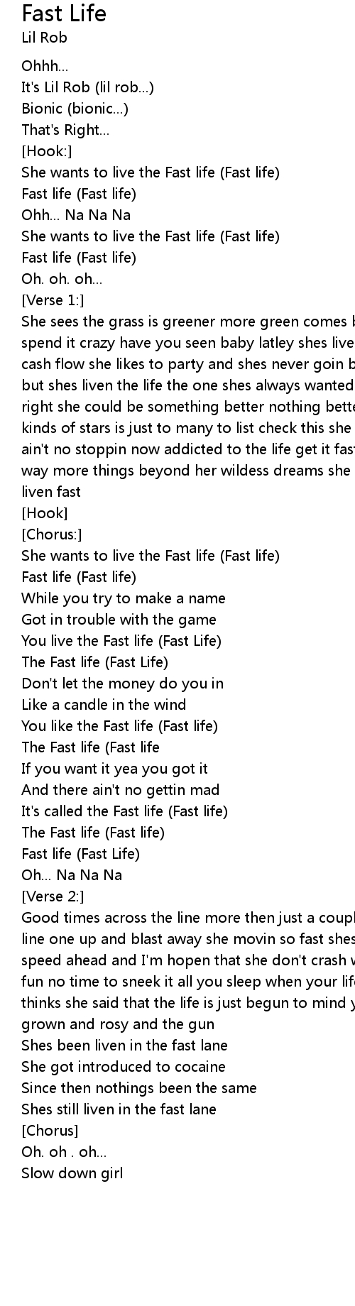 You live the Fast life (Fast Life) |