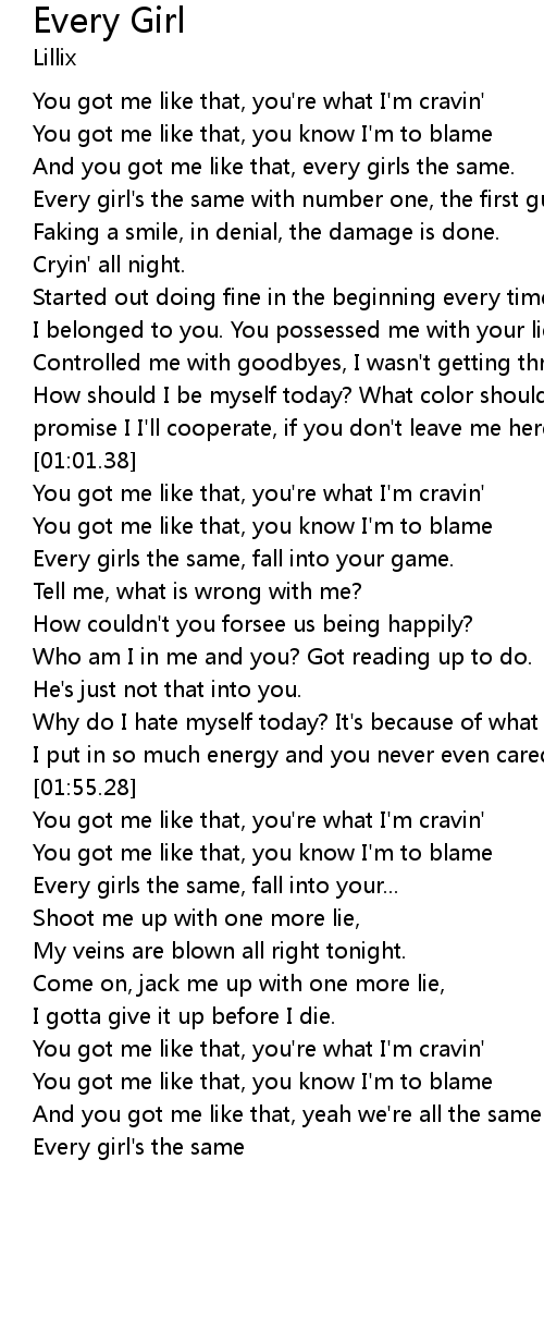 And you got me like that, every girls the same. |