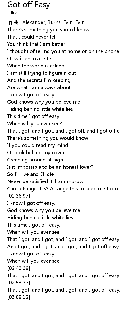 | [03:00.44] | That I got, and I got, and I got, and I got off easy. |