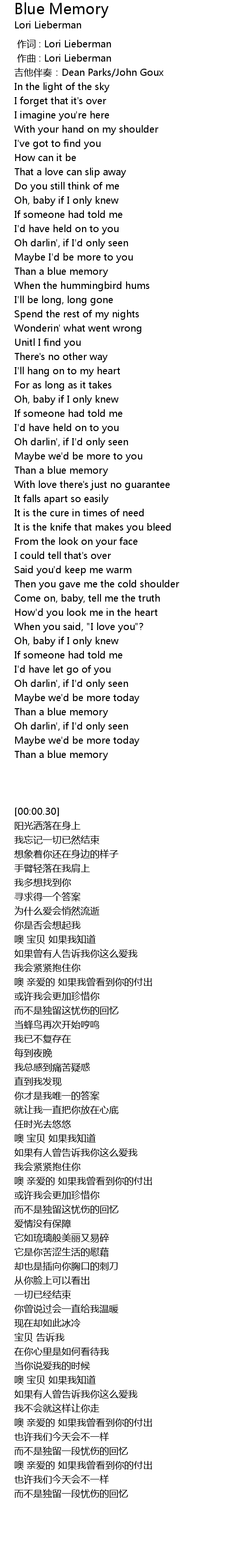 | [00:00.30] | 吉他伴奏:Dean Parks/John Goux |