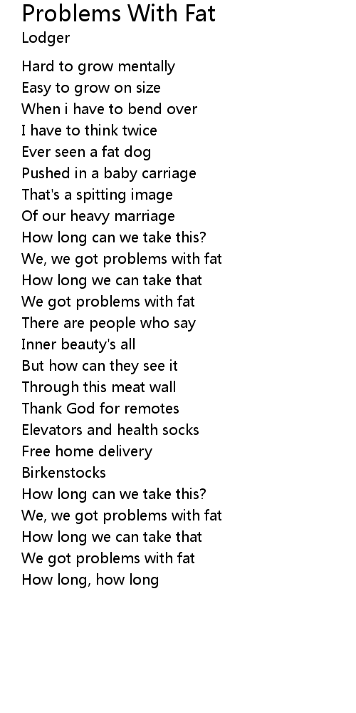 We, we got problems with fat |