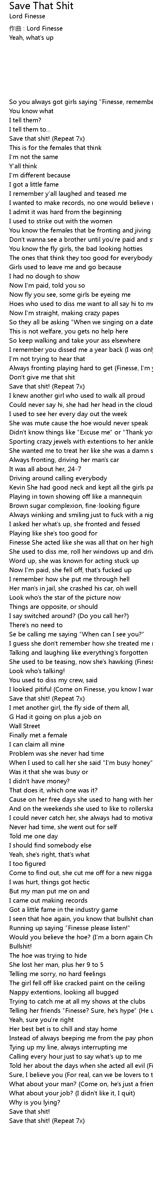 | 歌曲 | Save That Shit |